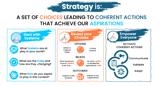 This emphasis on choice is intentional. Too often, strategy is treated as a linear planning exercise rather than a set of deliberate decisions under uncertainty.